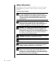safety information This product has not been evaluated for connection to an “IT” power system (an AC distribution system with no direct connection to earth, according to IEC 60950). ac power safety warnings WARNING: Install the PC near an AC outlet. The AC power cord is your PC’s main AC disconnecting device and must be easily accessible at all times. For your safety, the power cord provided with your system has a grounded plug.