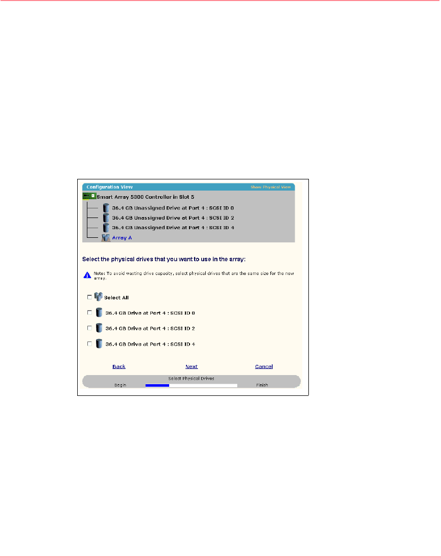 The physical drive selection screen is displayed. (Use the scrollbars in the