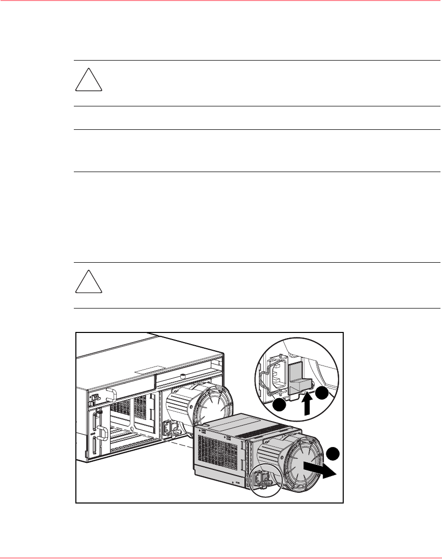 Caution: Removing a power supply significantly changes the airflow within