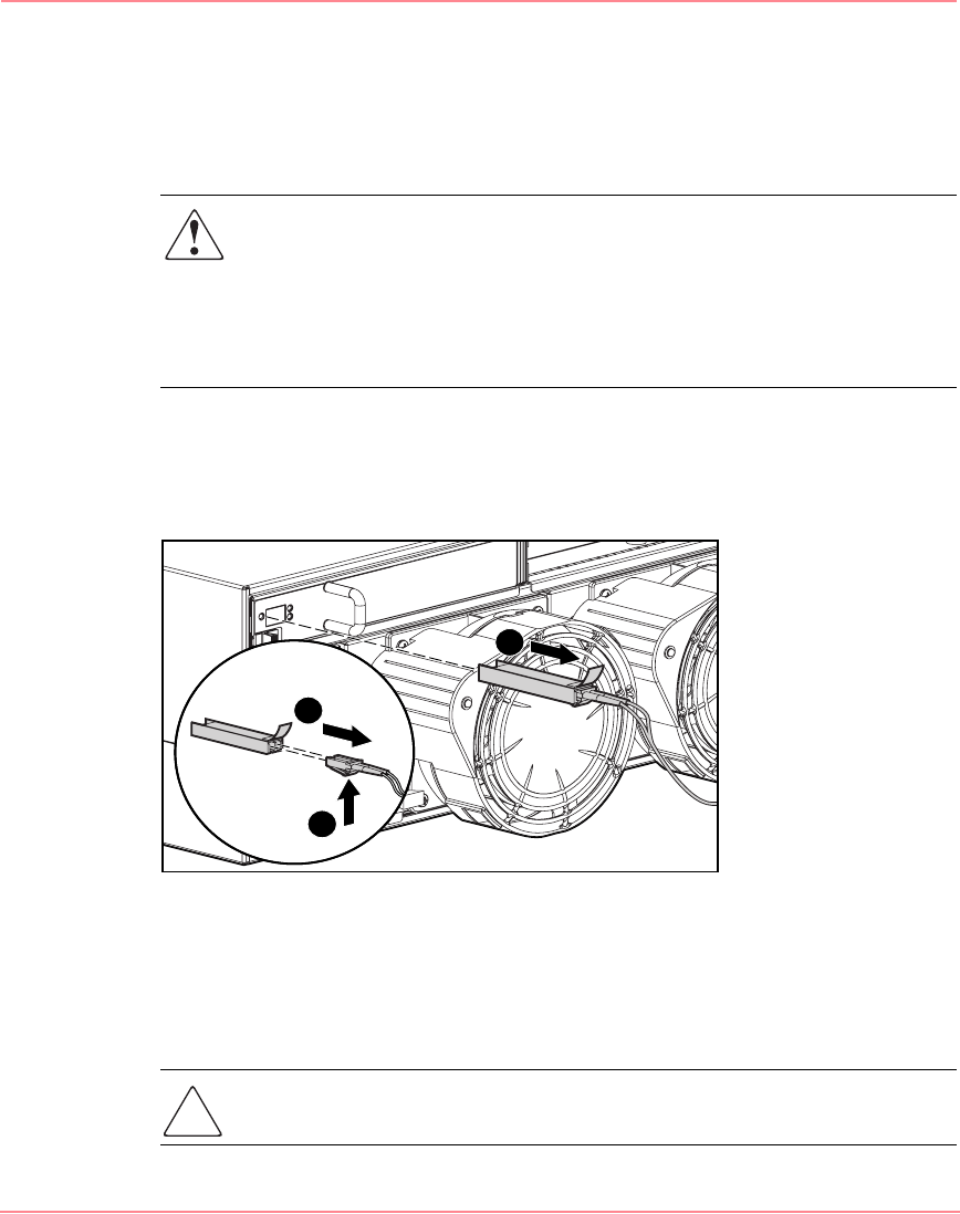 2. Press the release clip on the bottom of the cable connector 2 to remove the
