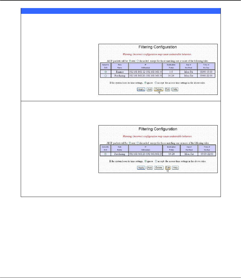 To delete an existing IP filtering rule: