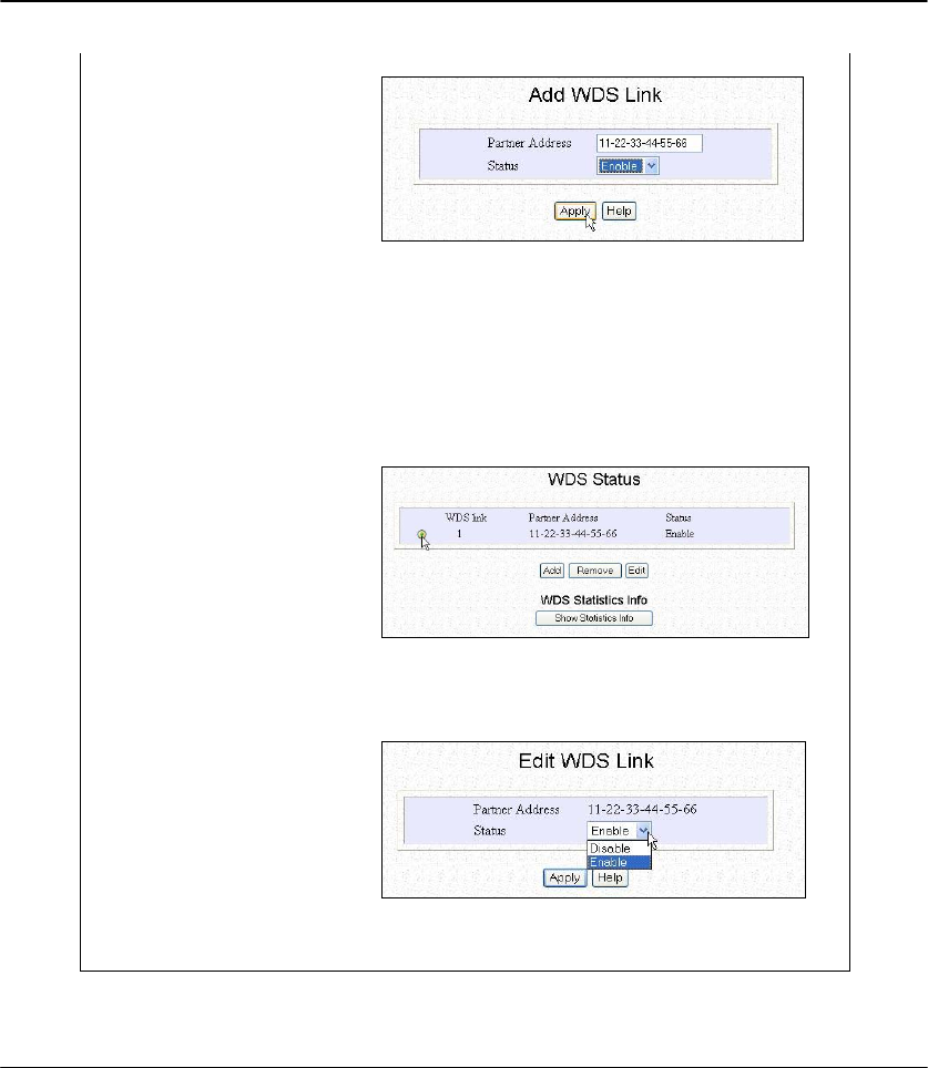 Use the Status option to control whether you want to Enable this particular WDS link or to