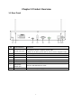 USER MANUAL Chapter 1 Safety Instruction ............................................................................... 4 Chapter 2 Product Overview............................................................................... 5 1.1 Rear Panel ............................................................................................................5 1.2 Remote Controller (For Reference Only)..................................................................6 Chapter 3 WIRELESS NVR Common Operations ....