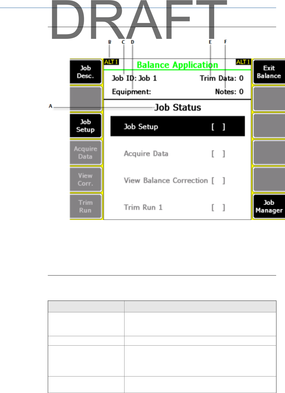 F3 Job Setup Set up the job parameters, including the balance mode, balance