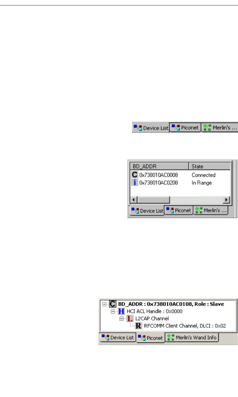 device’s state: C = Connected; i = In Range. Right-clicking on