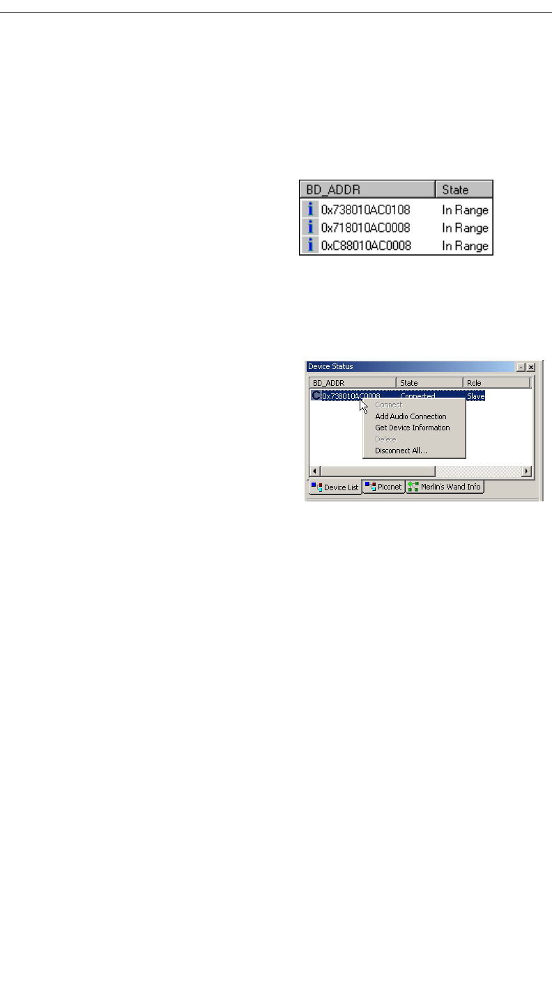 Note: The Device List Pop-Up Menu is not accessible while the Bluetooth Wizard is