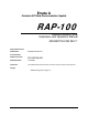 Errata A Comtech EF Data Documentation Update RAP-100 Remote Access Panel Installation and Operation Manual MN-RAP100.IOM REV 1 Original Manual Part Number/Rev: MN/RAP100.IOM Rev 1 Errata Number/ PLM Document ID: ER-RAP100-EA1 PLM CO Number: C‐0029408 Comments: The updated information will be in the next formal revision of the manual.