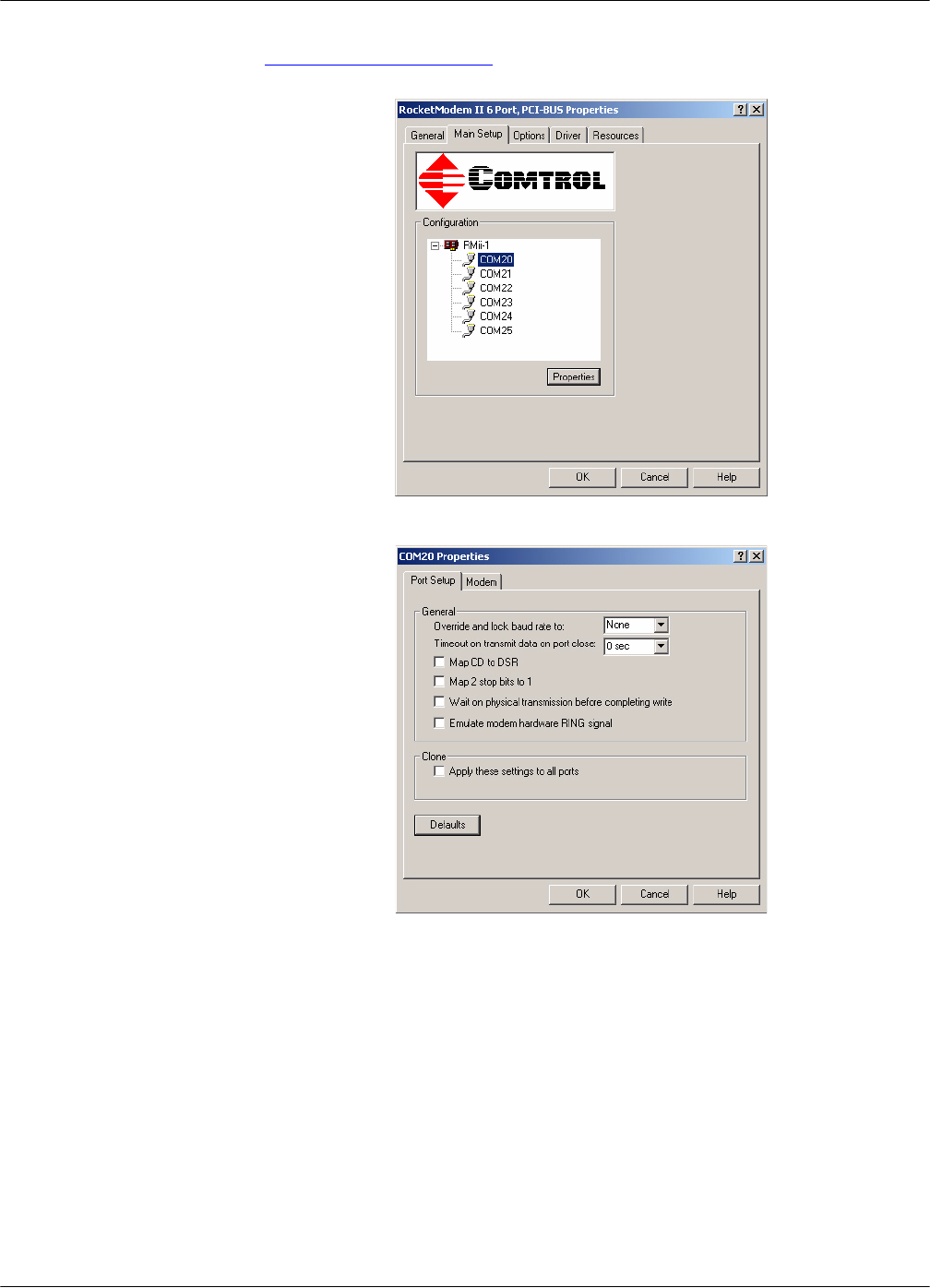 The Modem tab appears if the selected port is a Comtrol modem product.