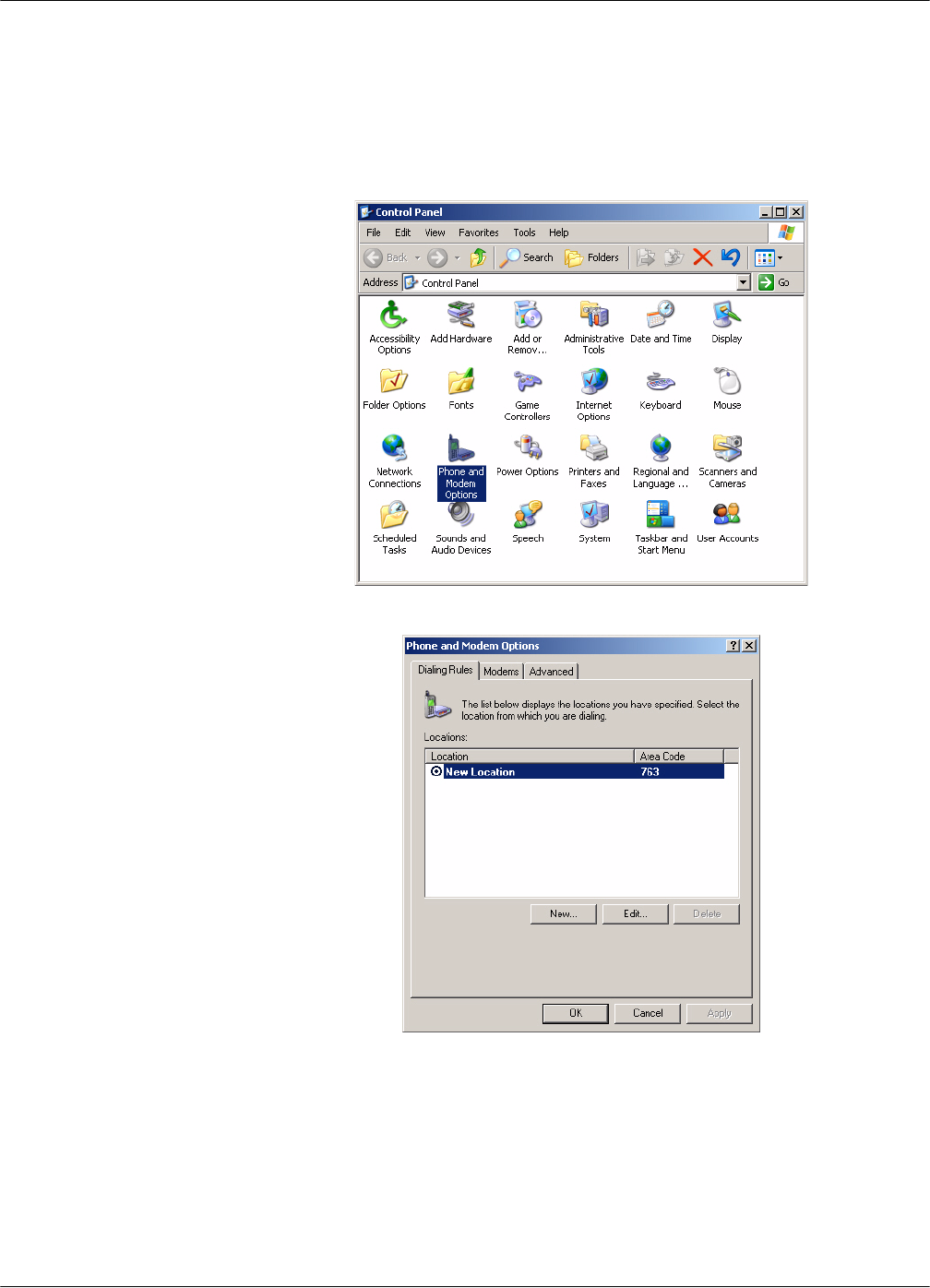 2. Open the Control Panel and select the Phone and Modem Options icon.