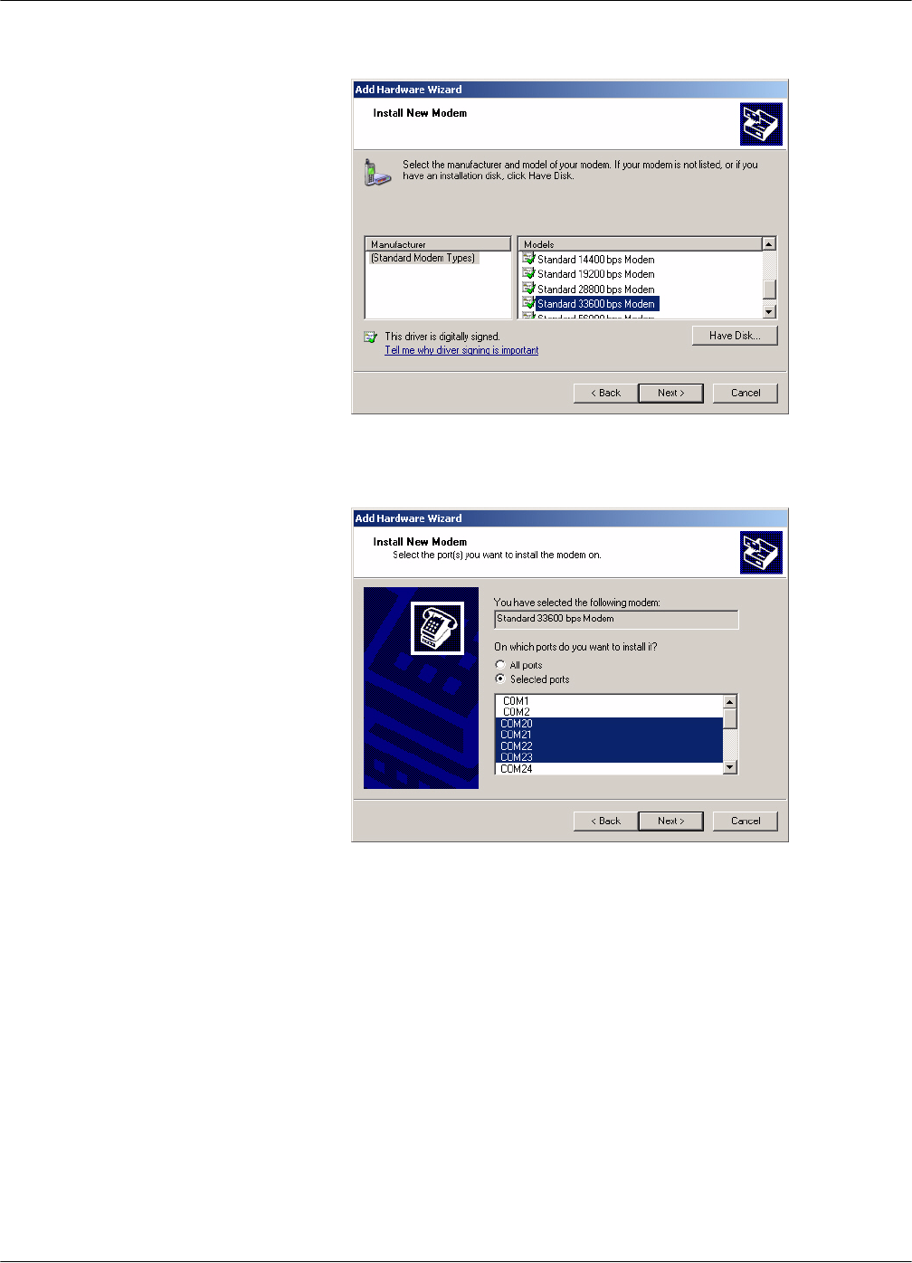 Note: If you have a driver from the modem manufacturer, select Have Disk and