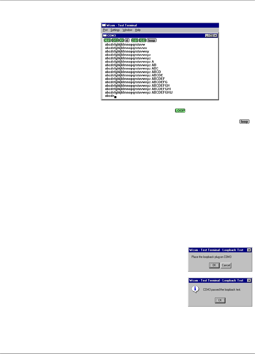 Note: If no characters appear, try putting the loopback plug on an adjacent