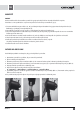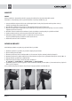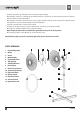 PL MONTAŻ UWAGA! Przed montażem lub demontażem urządzenia należy odłączyć przewód zasilający z gniazdka elektrycznego. Wentylatora można używać wyłącznie z założoną przednią i tylną kratką zabezpieczającą (1), (5). 1. Złożyć podstawę stojaka z części (9, 10) i zamontować do niej nogę teleskopową (7) za pomocą czterech śrub (w zestawie). Powstałe łączenie zakryć plastikową obudową (8). 2. Nasadzić korpus urządzenia na wspornik stojaka i całość zabezpieczyć śrubą mocującą (15). 3.