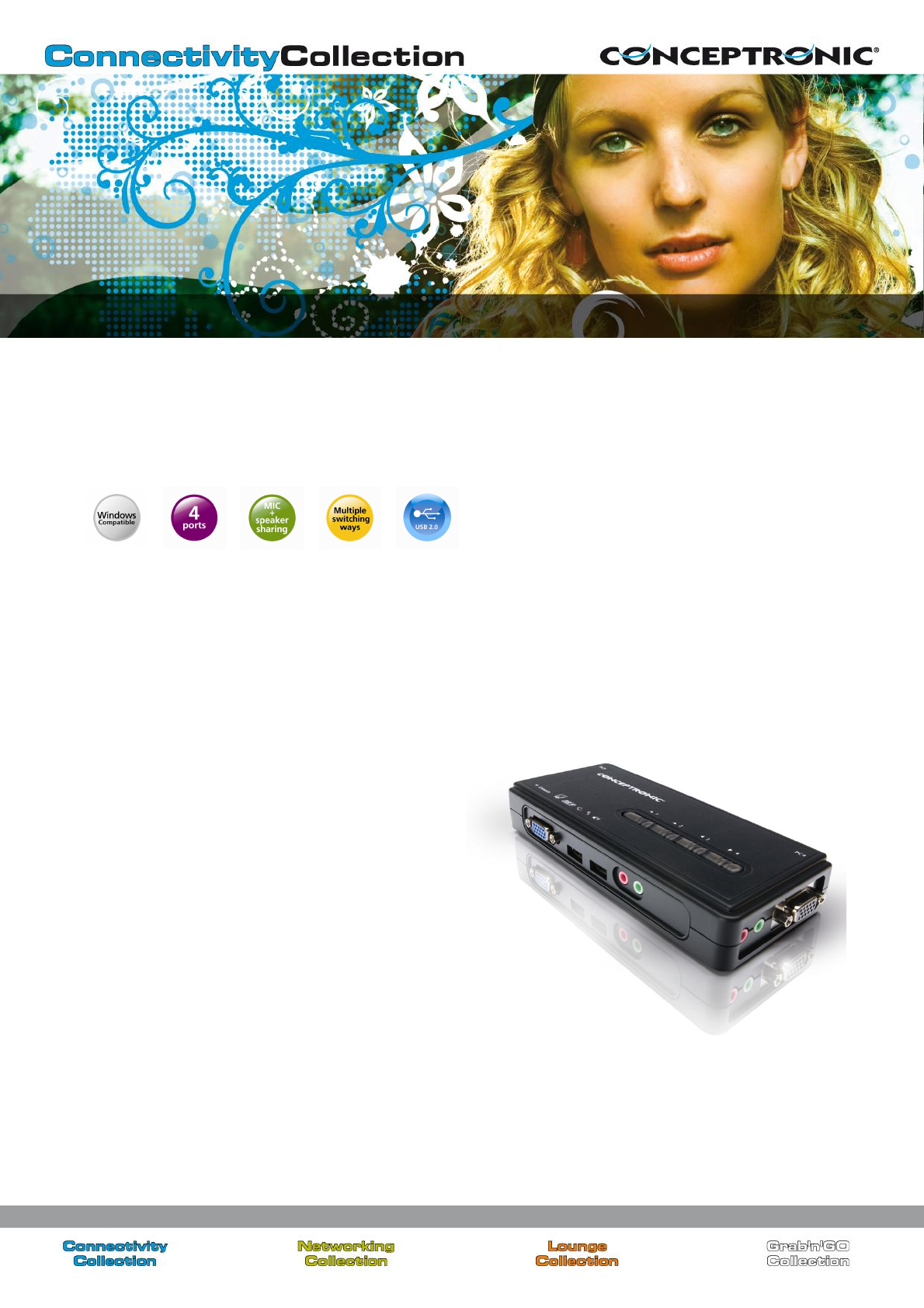 ● Connect 4 PC´s with one monitor, mouse and keyboard through USB