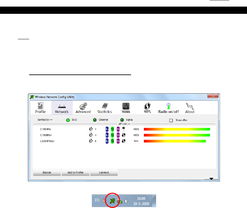 If the wireless utility is not shown, double click on the system tray icon of the wireless utility: