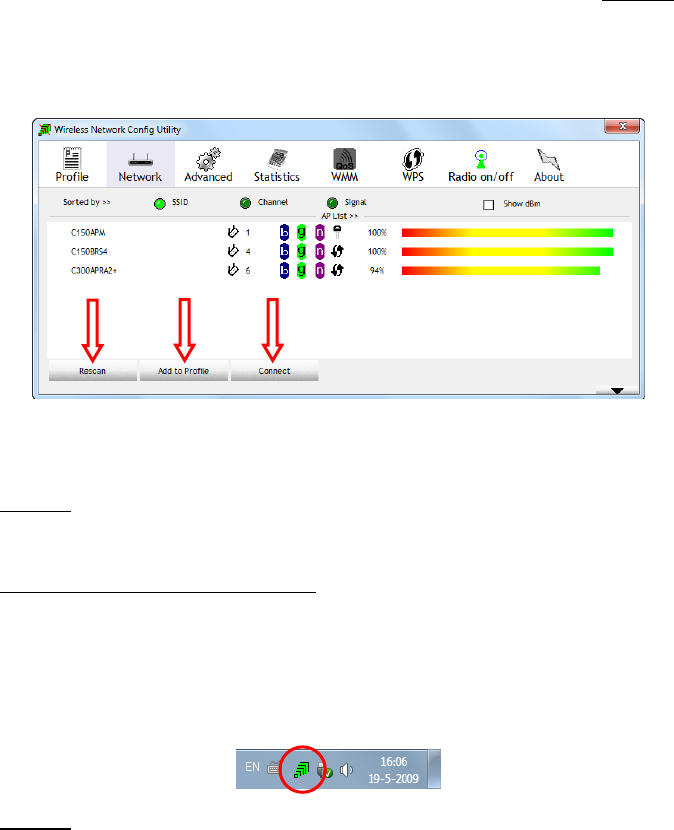 votre Adaptateur 300N USB. Si votre réseau sans fil ne s'affiche pas, vous pouvez cliquer sur "Rescan"
