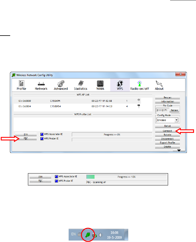 - Prima o botão WPS no Adaptador USB Sem Fios 300N (consulte o capítulo 2 para ver onde está situado o