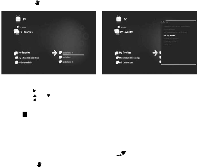 Schritte zum Ändern einer Liste von Lieblingskanälen: