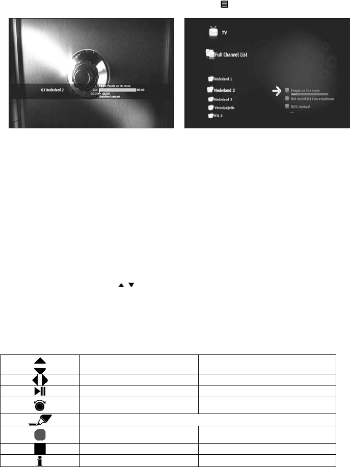 o Seleccionar o canal, navegando na lista de canais e premir a roda no controlo remoto.