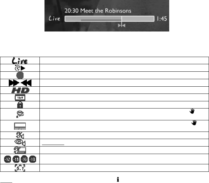 A tévé infosáv szempontjából rendelkezésre álló opciók ikonként jelennek meg az infosáv előtt. Az alábbi