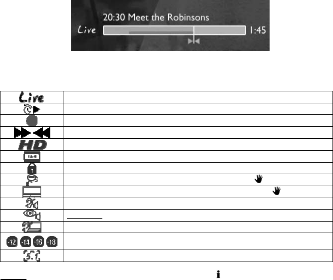 Las opciones disponibles en la barra de información de TV se muestran en forma de iconos delante de la