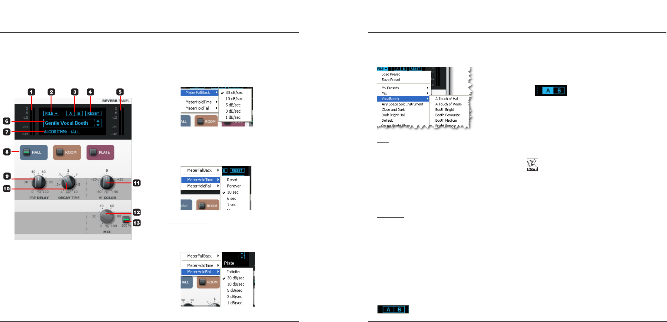 Reverb (see also descriptions of the parameters