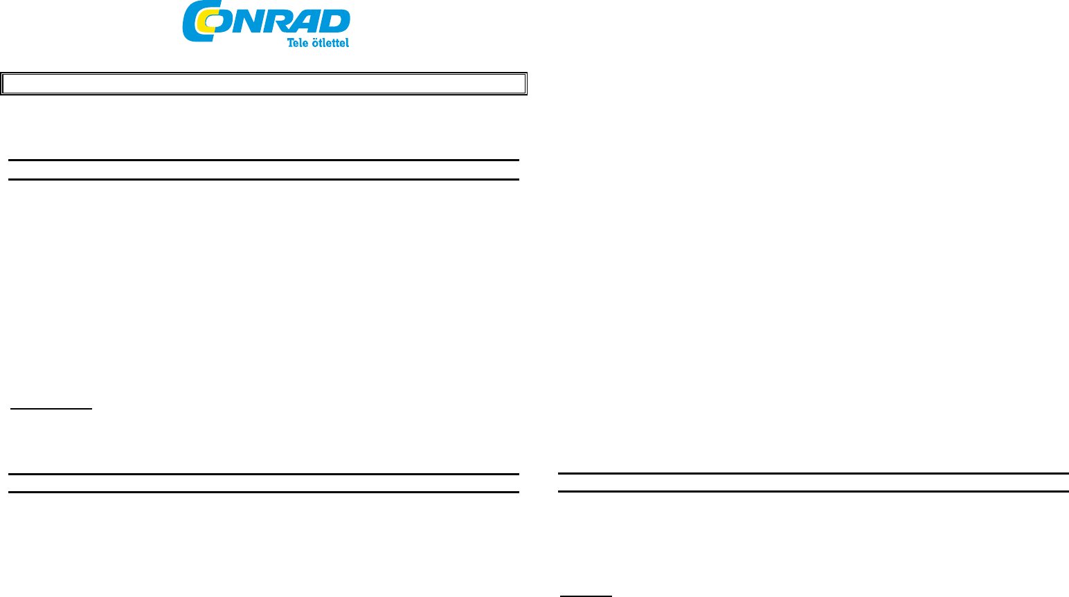 Conrad Vevőszolgálat 1124 Budapest, Jagelló út 30. Tel: (061) 319-0250