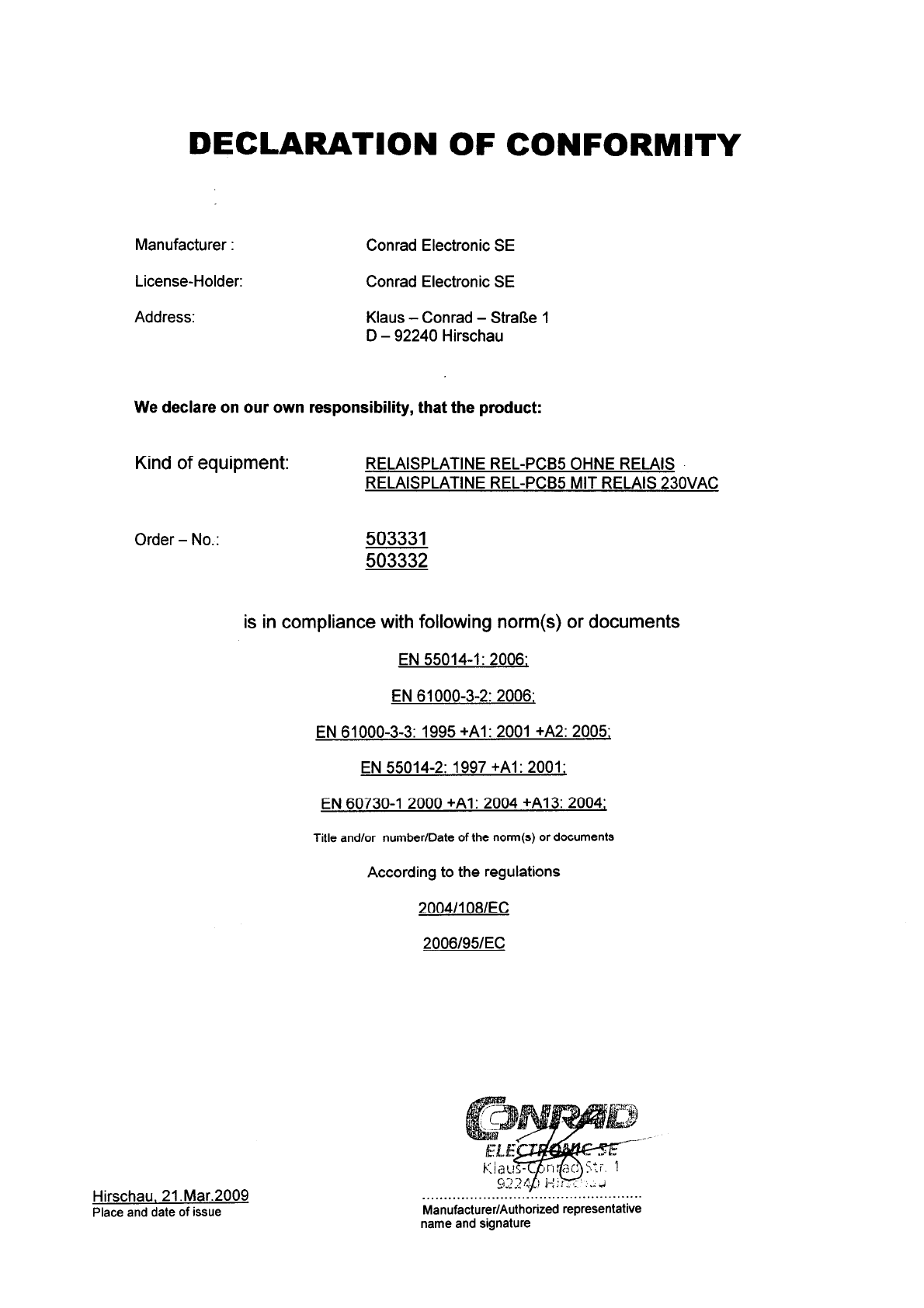 Declaration of conformity