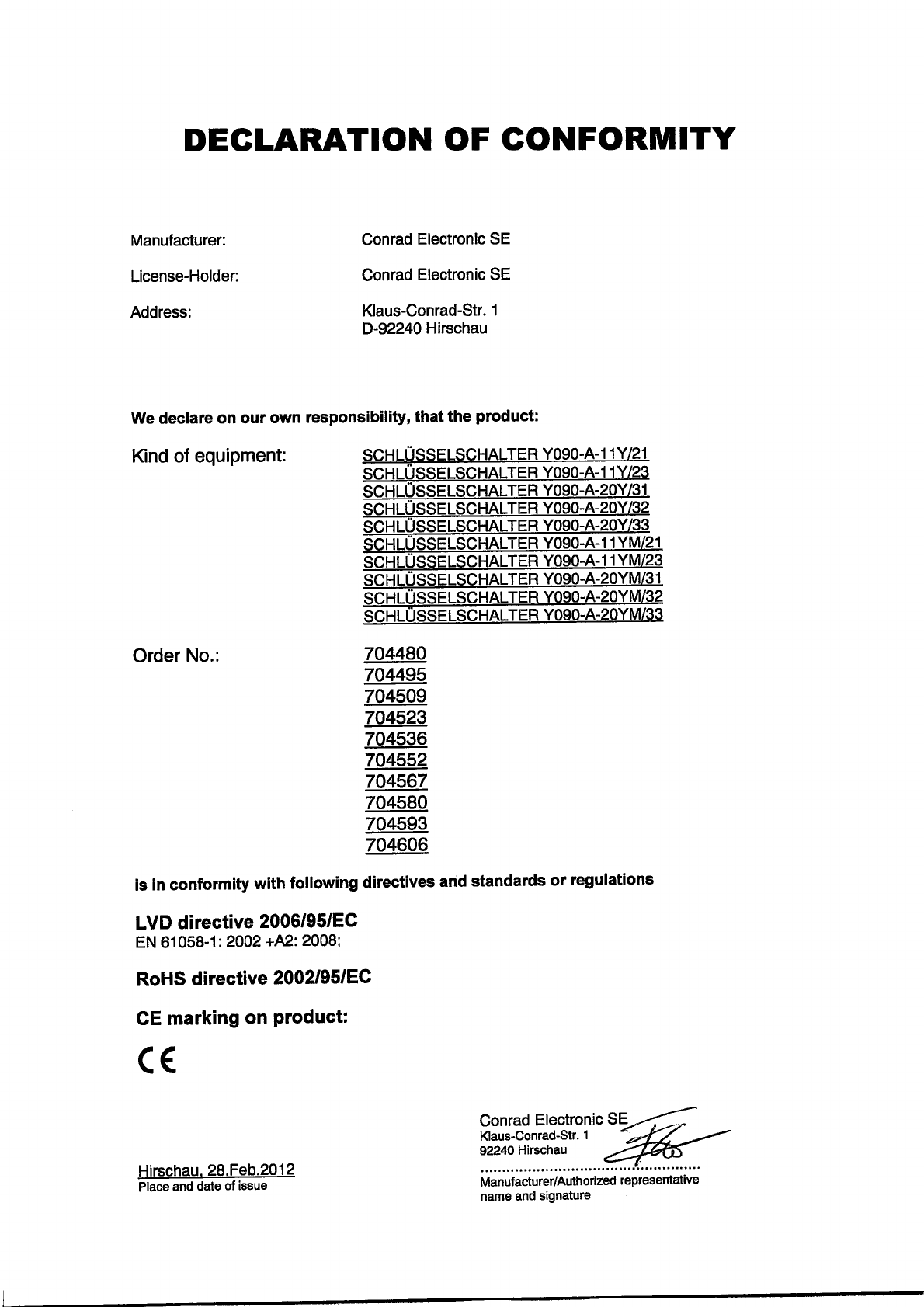 Declaration of conformity