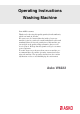 Operating Instructions Washing Machine Dear ASKO customer, Thank you for choosing this quality product from Scandinavia, which was made in Sweden. We want you to feel assured that the inside of your new machine is just as good as the outside and that the ethics and standards that went into the production of this machine are just as high as the quality and performance that you will receive from it. We hope that this product will give you many years of pleasure.