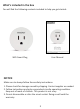 What’s included in the box You will find the following contents included to help you get started: WiFi Smart Plug User Manual NOTICE Make sure to always follow these safety instruc�ons: 1. Please check for damage caused by shipping. Contact supplier as needed. 2. Follow instruc�ons and only use products in safe opera�ng condi�on. Keep out of reach of children. This product is not a toy. 3. Do not disassemble or alter the smart socket. Doing so will void the warranty.