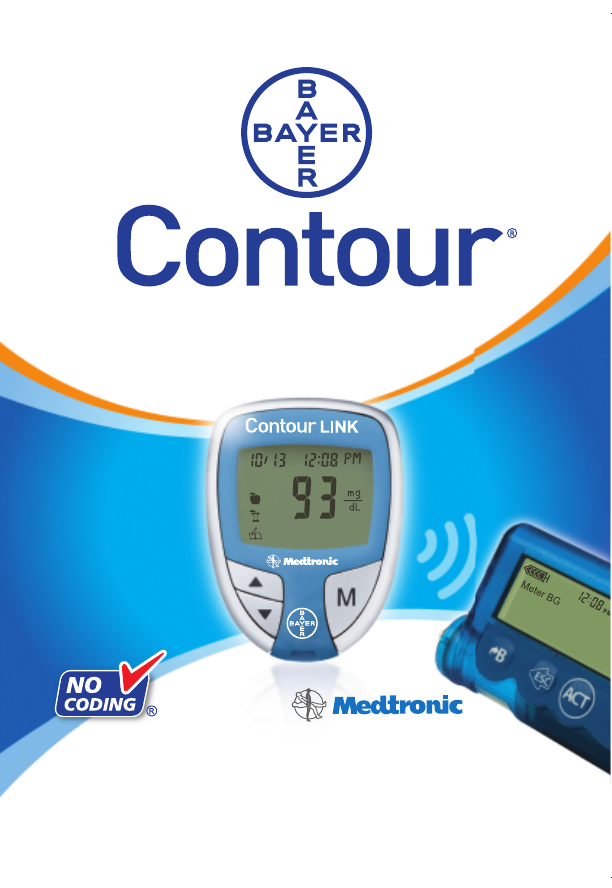 LINK WIRELESS BLOOD GLUCOSE MONITORING SYSTEM 93 USER GUIDE USES BAYER’S CONTOUR® BLOOD GLUCOSE TEST STRIPS 1M 84378888_CntrLINK_UG_EN_FpBp_v3.indd ofc1 3/30/12 11:43 AM FC: 23 mm BC: 9 mm Footer: N/A 1/3rd of the Cross clear 7mm min. space has been applied. 18211 NE 68th Street, E120 Redmond, WA 98052 T: 425-881-5454 BAN#:84378888 DATE: March 30, 2012 CLIENT: Bayer HealthCare DESCRIPTION: Contour LINK UG - English SCHAWK JOB#: SKU#: DIMENSIONS: PRINTER SPEC: FONTS: COLORS: Rev.