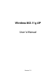 1. Introduction Thank you for purchasing your AP Wireless 802.11g AP. This user guide will assist you with the installation procedure. The package you have received should contain the following items: AP Wireless 802.