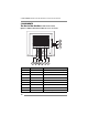 COMPONENTS: The Back of the Monitor (Connection Locations) COMPONENTS: The Back of the Monitor (CONNECTION LOCATIONS) Figure 2: CT1503 Connection Locations (Back-View of the Monitor) 10 Number Abbreviation Definition 1 VGA 15-Pin Connector for D-Sub (Analog) 2 PWR AC/DC Adapter Connection 3 OUT AUD 4 AUD IN 5 ANTENNA 6 S-VIDEO 7 VIDEO Video Input Connection (Yellow) 8 L AUD Stereo Audio Left Connection (White) 9 AUD R Stereo Audio Right Connection (Red) Sound Out Connection Soun