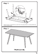 Attach the legs (2) to the table top (1) and secure it by using washers (C), spring washers (B), nuts (A) and wrench (D).