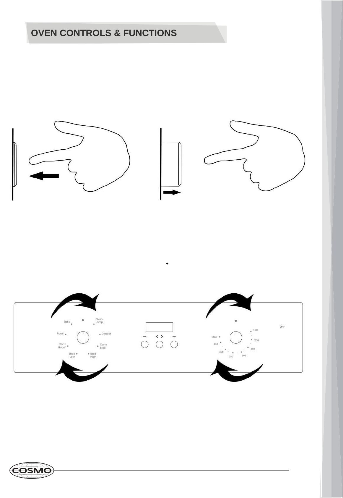 ROTATE KNOB TO SELECT COOKING FUNCTION AND TEMPERATURE