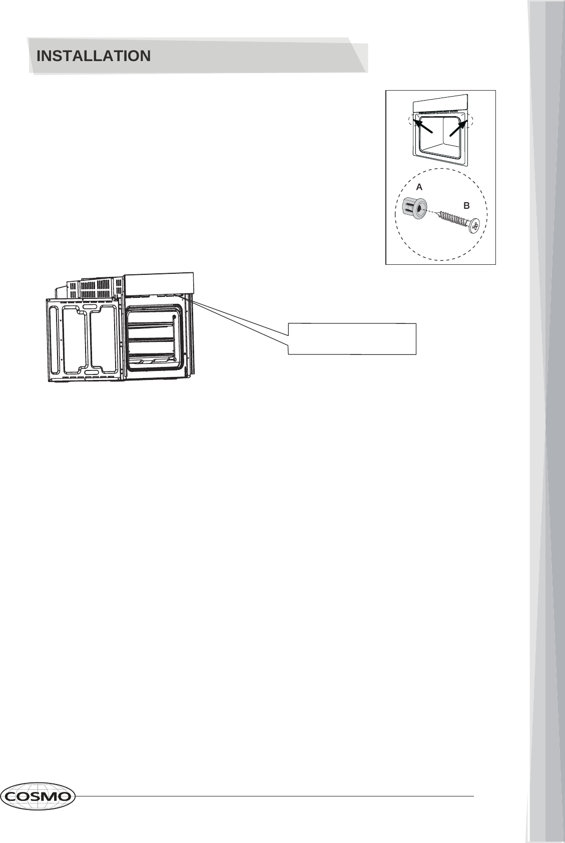 3.) Secure the oven to the kitchen cabinet with two distance