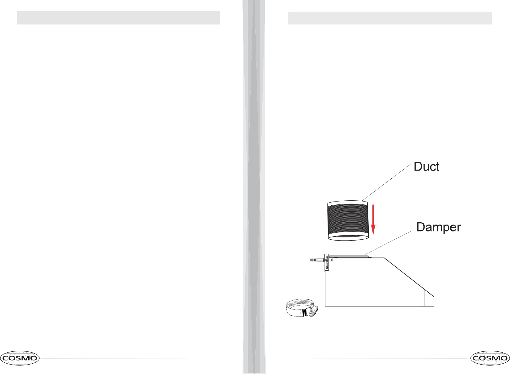 vertically through upper cabinet or ceiling. A duct transition piece is supplied for