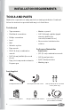 INSTALLATION REQUIREMENTS TOOLS AND PARTS Gather the required tools and parts before starting installation. Read and follow the instructions provided with any tools listed here. Tools Needed • Tape measure • Marker or pencil • Flat-blade screwdriver • 3/16" (4.8 mm) carbide-tipped masonry drill bit (for concrete/ceramic floors) • Phillips screwdriver • Level • Noncorrosive leak-detection solution • Drill • Wrench or pliers • Pipe wrench • 15/16" (2.