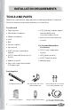 INSTALLATION REQUIREMENTS TOOLS AND PARTS Gather the required tools and parts before starting installation. Read and follow the instructions provided with any tools listed here. Tools Needed • 3/16" (4.8 mm) carbide-tipped masonry drill bit (for concrete/ceramic floors) • Tape measure • Flat-blade screwdriver • Phillips screwdriver • Noncorrosive leak-detection solution • Level • Drill • Wrench or pliers • Pipe wrench For Propane/Natural Gas Conversions • 15/16" (2.4 cm) combination wrench • 1/2" (1.