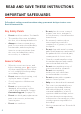 READ AND SAVE THESE INSTRUCTIONS IMPORTANT SAFEGUARDS Follow basic safety precautions when using your smart air fryer toaster oven. Read all instructions. Key Safety Points Do not place the oven or any of its parts on a stove, near gas or electric burners, or inside another heated oven. • Do not touch hot surfaces. Use handle. • The outside of the oven, including the door, is hot during and after use.