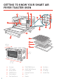 GETTING TO KNOW YOUR SMART AIR FRYER TOASTER OVEN B A C F E D J H I K L M N O 16.5 in / 4.2 cm P 11.4 in / 2.9 cm 18.5 in / 4.7 cm 6 A. Housing G. TIME/TEMP Button M. Fry Basket B. LED Display H. START/PAUSE Button N. Wire Rack C. Control Knob I. Power Cord O. Food Tray D. SHAKE Button J. Heating Elements P. Crumb Tray E. Power Button K. Door F. Fan/Light Button L.
