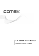 6.Warranty Statement 6-1. Warning Warning! Do not open or disassemble the Converter / Charger. Attempting to do so may cause risk of electrical shock or fire. 6-2. Warranty We guarantee this product against defects in materials and workmanship for a period of 24 months from the date of purchase. In case you need to repair or replace any defective power inverters, please contact COTEK local distributor. This warranty will be considered void if the unit has been misused, altered, or accidentally damaged.
