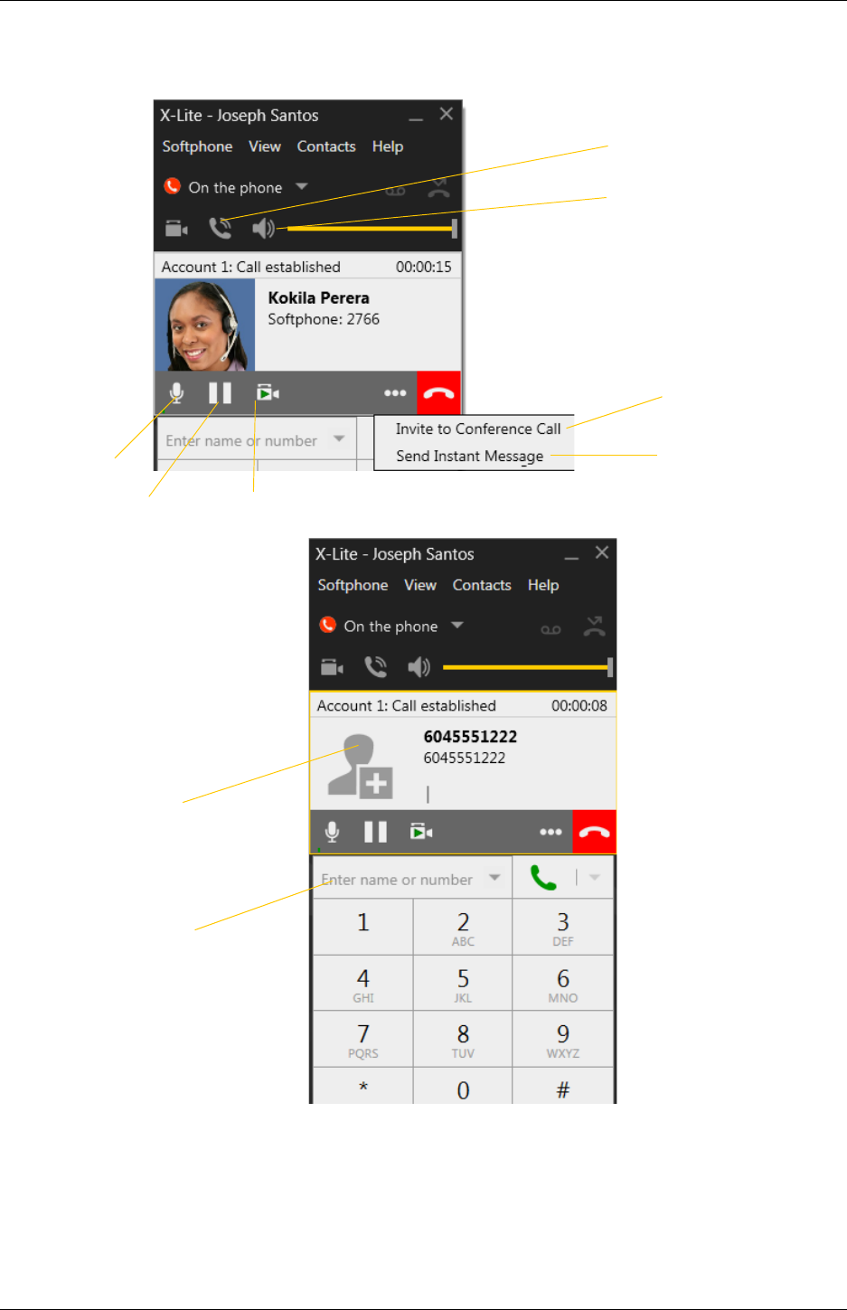 Click the red End call button on the Call panel (the call can be active or on hold). The call panel closes after a
