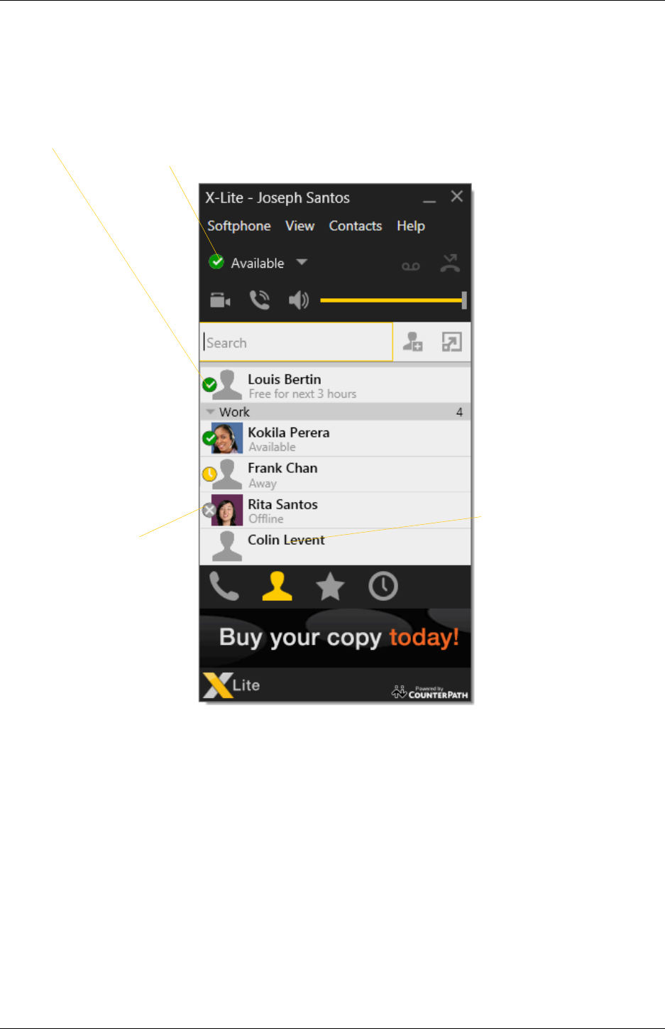 the online status of other contacts. Typical online statuses are available, on the phone, busy, and so on.