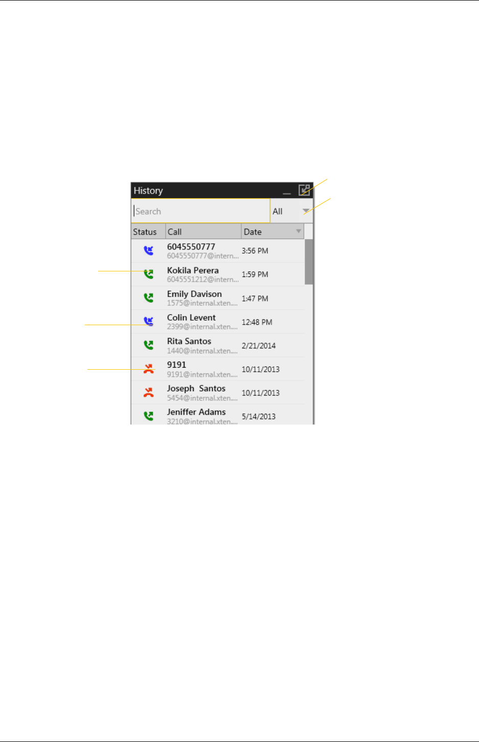 • Right-click on an entry to place a call to this person, using the contact method that was used for this call.
