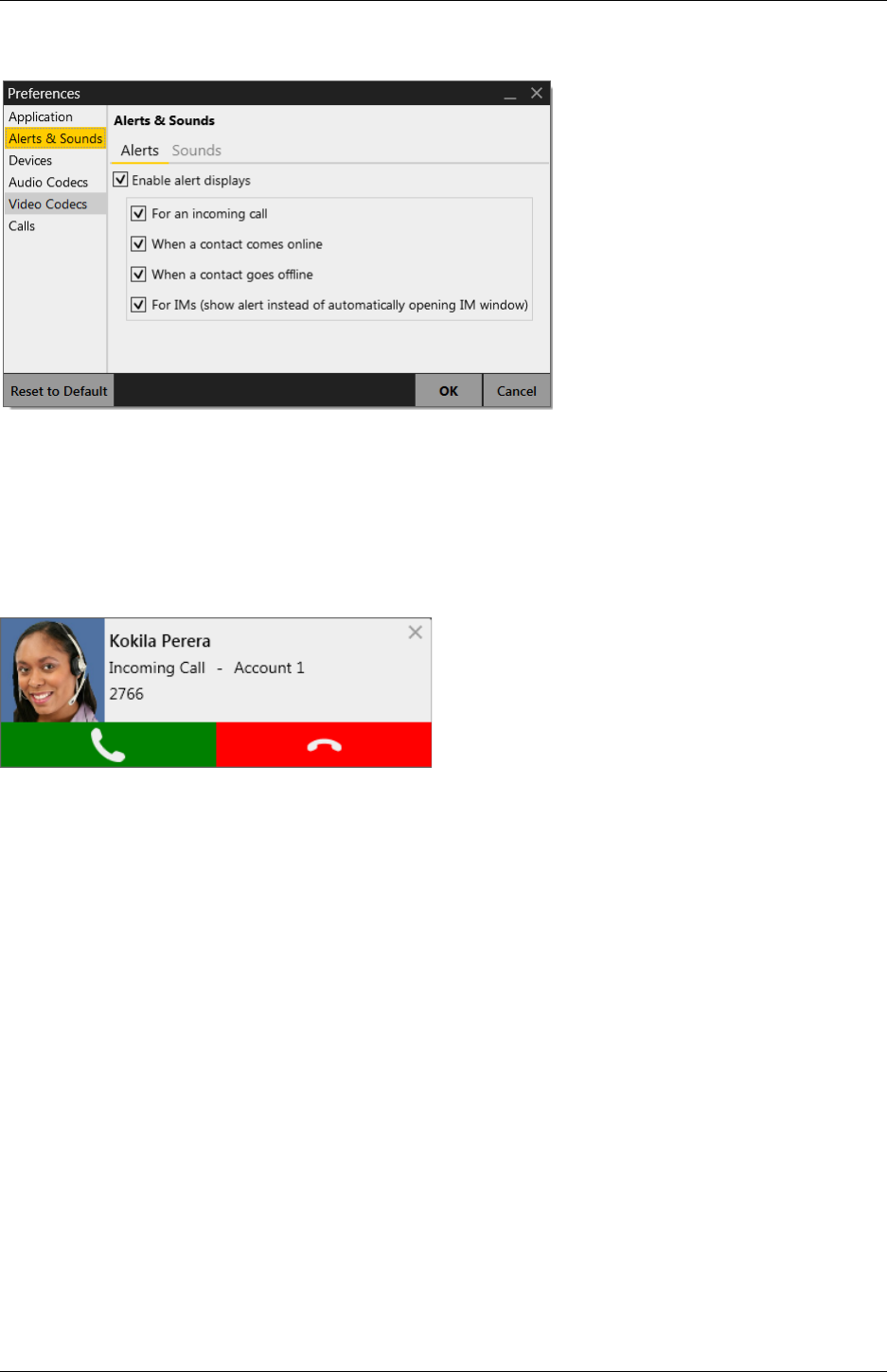 The tabs on this panel let you control the Call Alerts box and lets you assign sounds.