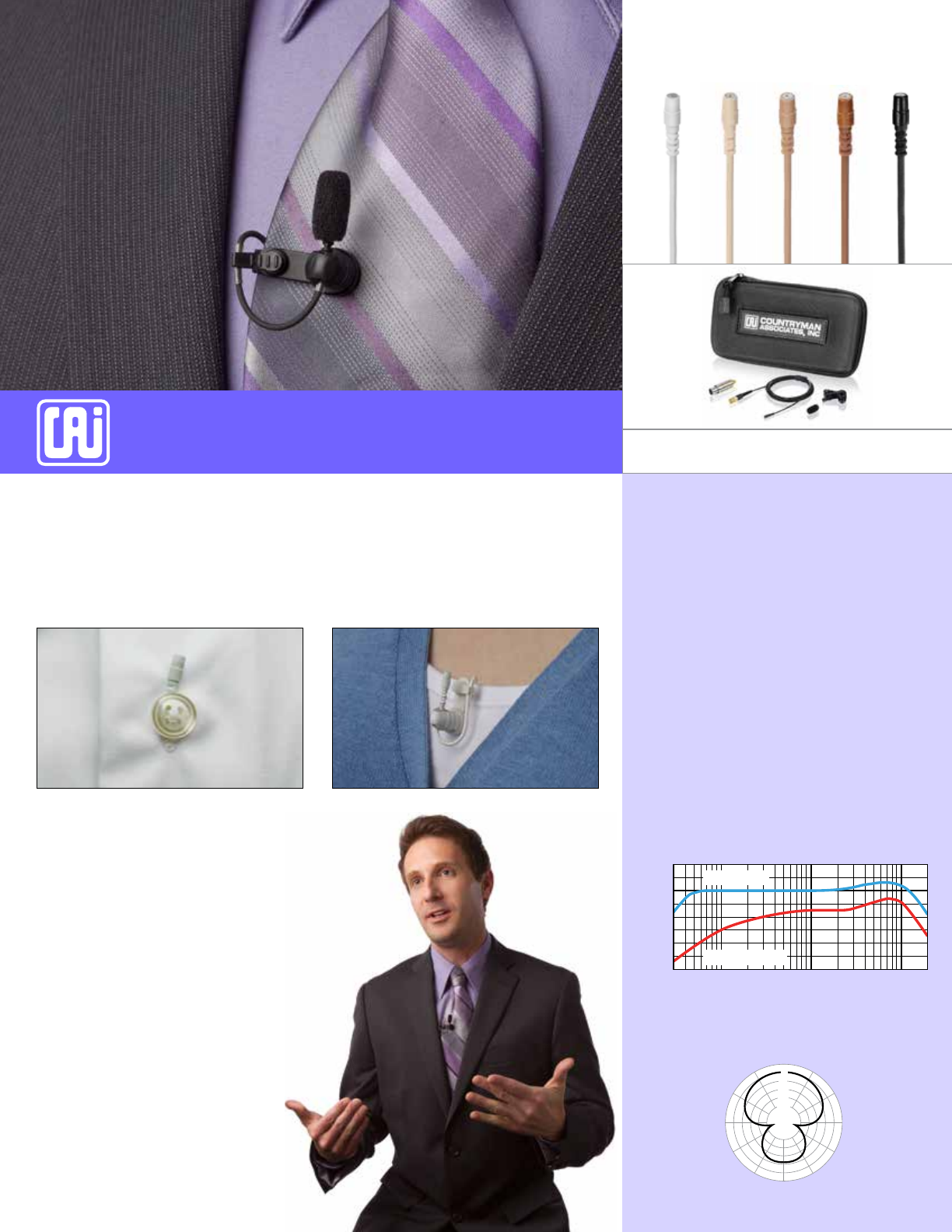 pattern gives the B2D an extra 6-10 dB of headroom compared to an omni lav,