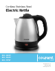 Cordless Stainless Steel Electric Kettle • Stainless steel body FEATURES • 360° rotational, separated base • Wrap-around cord storage • Automatic shut-off when water boils or dry • Power: 1000W • Voltage: 120V~ 60Hz 1.2 Liter Capacity 1.5 Liter Capacity 1.7 Liter Capacity KEC-123ST (Stainless Steel) KEC-154ST (Stainless Steel) KEC-177ST (Stainless Steel) Case Quantity: 12 Impecca™ is a registered trademark of Luzerne Trading Co. Wilkes-Barre PA, All rights reserved.