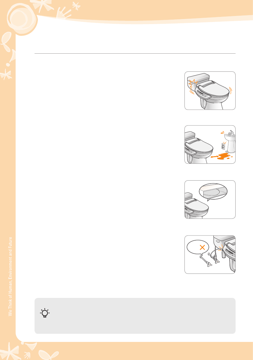 Tighten the fixing screws firmly so that the bidet body won’t be shaky on
