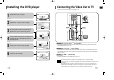 1p~40p(Q100)-XAA 2006.5.29 1:45 PM Page 18 Installing the DVD player Connecting the Video Out to TV ENG Choose one of the three methods for connecting to a TV. 1 Separate the rear cover(A). 2 Remove the 1 screw of the cover(B). (A) (B) 3 Put the speaker cable connected to the Speaker OUT port into the left groove. 4 Put the cables connected to the Video OUT, Component OUT and Audio IN ports into the right groove. METHOD2 METHOD 3 METHOD 1 (supplied) TV METHOD 1 Composite Video .......